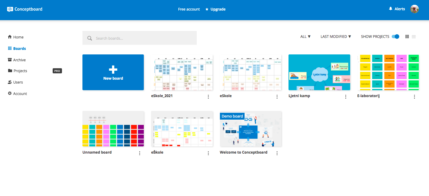 Conceptboard kolaboracijski online alat namijenjen je prvenstveno suradnji unutar tima, objedinjavanju ideja, informacija, slika i dokumenata, a može se jednostavno i učinkovito koristiti za strukturne i grafičke prikaze (umne mape, vremenske crte, dijagrame i sl.).
