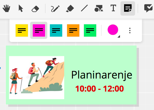 - Podsjetnik (sticky note) – mogućnosti prilikom dodavanja i oblikovanja podsjetnika: odabir dimenzija, proporcionalnost, boja i veličinu fonta, umetanje poveznice ili slike…