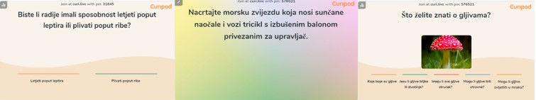 - Curiosity poll – anketa koja provjerava što bi učenike najviše moglo zanimati o zadanoj temi, itd.