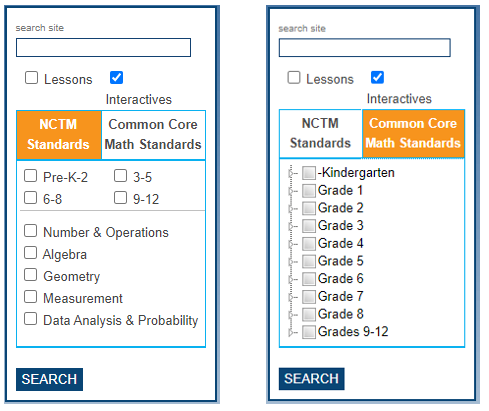 Pregled je lekcija moguć samo uz prijavu i članstvo u Nacionalnom vijeću učitelja matematike, a interakcije su dostupne bez prijave, uz napomenu da pojedine imaju ograničeni pristup. Odabirom vrste standarda (NCTM ili uobičajeni) pa matematičkog područja/razreda te odabirom tipke search otvara se popis raznih alata koji se jednostavno mogu integrirati u nastavni proces. Svi su alati optimizirani za upotrebu na računalu ili tabletu.
