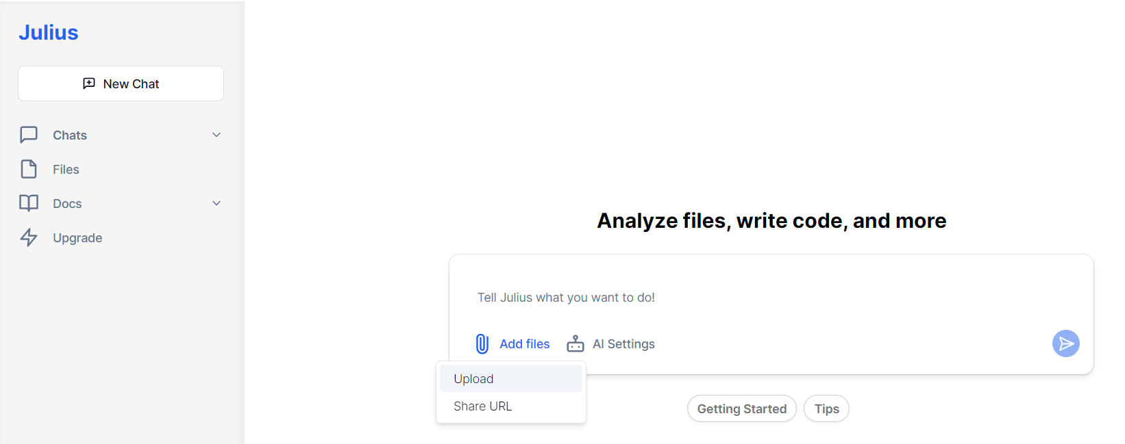 Julius AI intuitivan je i jednostavan alat. Samo je potrebno učitati podatke i postavljati pitanja kako bi dobili potrebne uvide. Omogućava značajke poput analize podataka, raznolike povezivosti s izvorima podataka, vizualizacije podataka, korisnički prijateljskog sučelja i analize vođene pitanjima koje zajedno pomažu pojednostaviti kompleksne zadatke analize i vizualizacije podataka. Sve navedeno olakšava pristup analizi podataka i pojednostavljuje ulazak u područje znanosti o podacima ili statistikama.